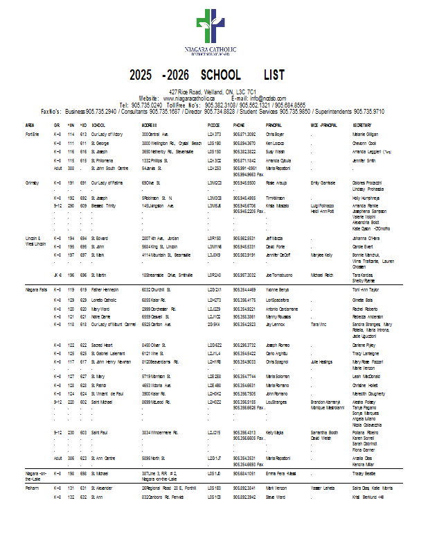 2025-2026 School List - Secretaries - 2 Page