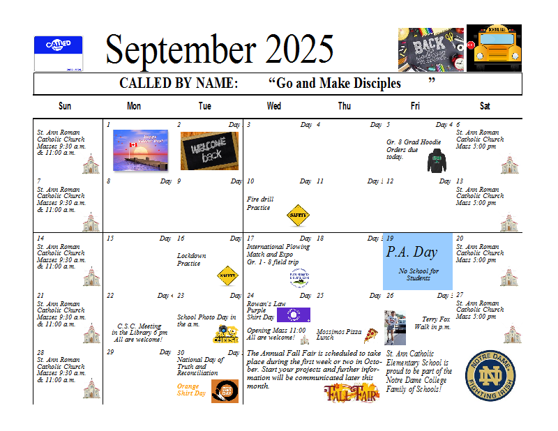 September 2025 Calendar St. Ann Fenwick